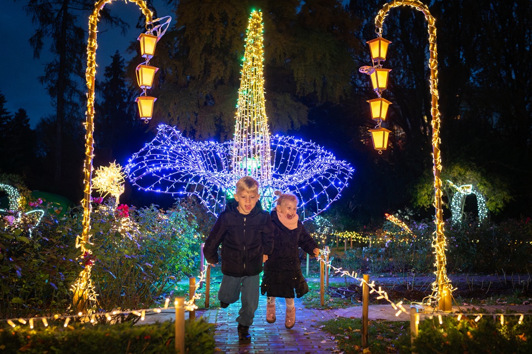 Na trasie zwiedzania ogrodu świateł czeka prawie 40 niezwykłych przystanków i milion kolorowych lampek.